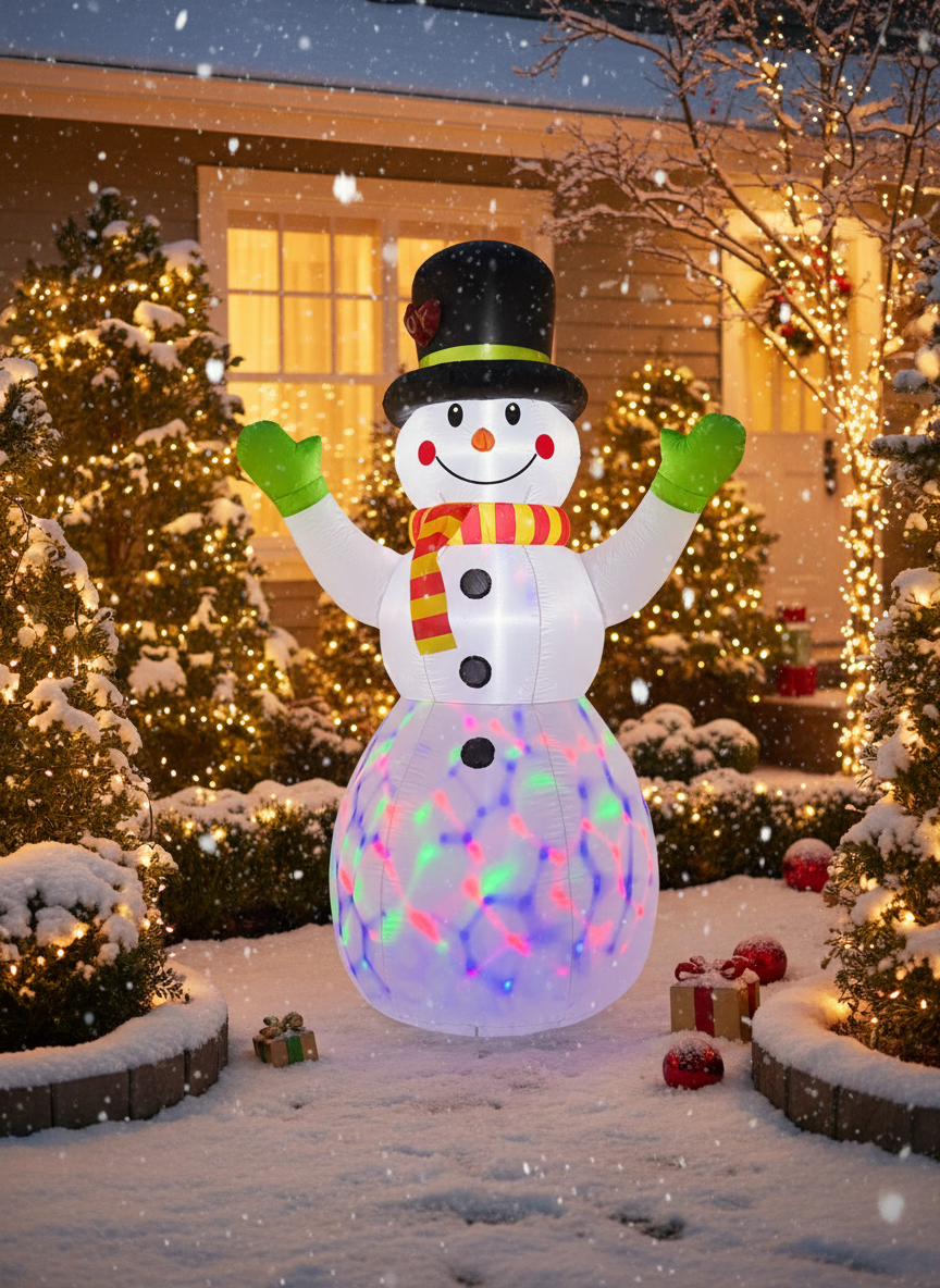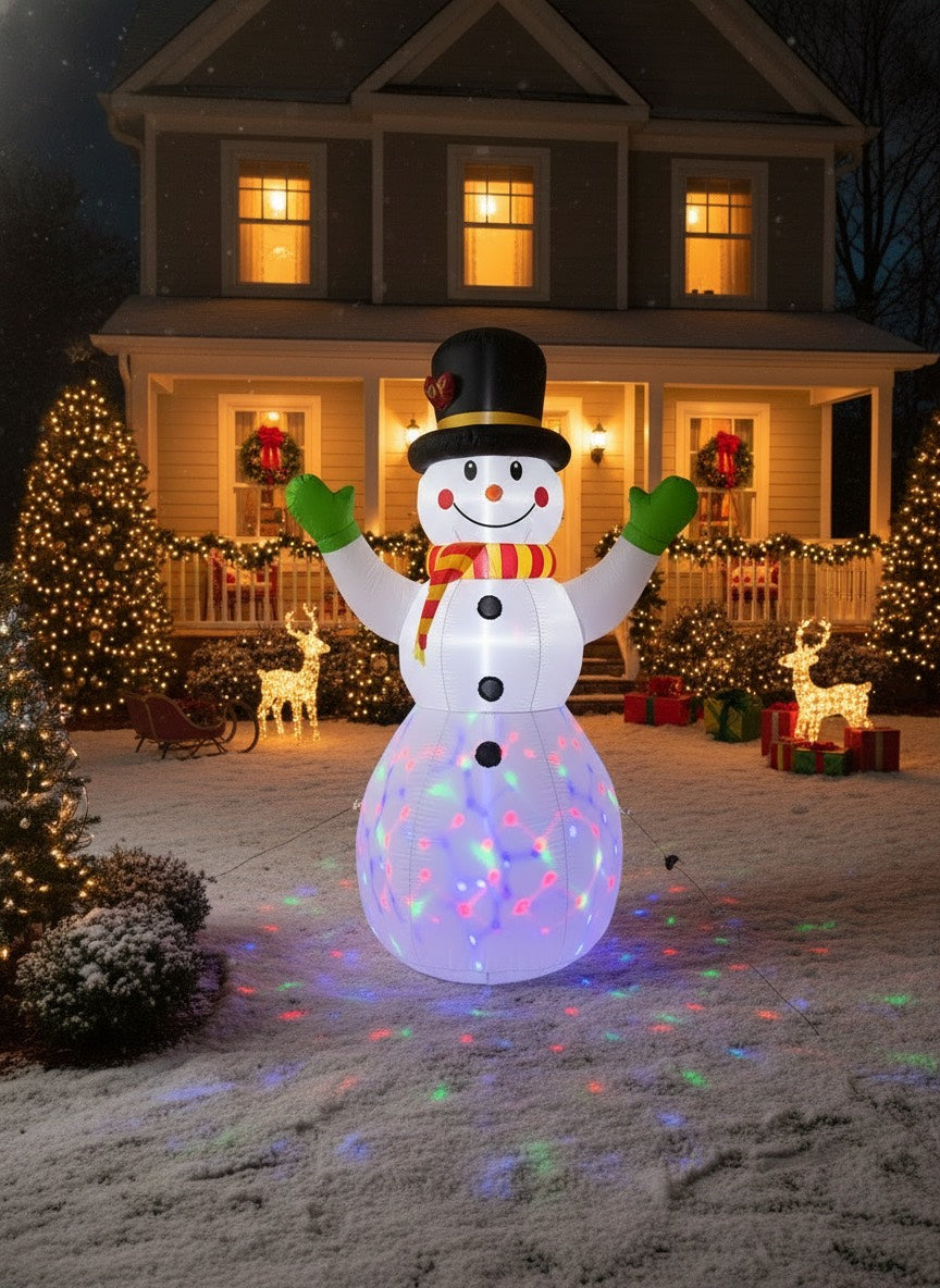 Verander uw huis in een warm, betoverend wintertafereel met SnowMan Buddy™: de 2,4 meter hoge, verlichte sneeuwpop die is ontworpen om uw kerstsfeer te verhogen.